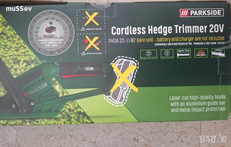 Акумулаторен храсторез 20В на Парксаид Parkside 20V → Обява 51541008