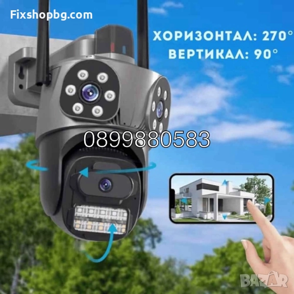 Тази високотехнологична WiFi камера осигурява изключително качество на видеонаблюдението благодарение на тройния си обектив и три отделни екрана за наблюдение. Подходяща за вътрешно и външно ползване, тя предлага детайлна и ясна картина дори от голямо разстояние.
