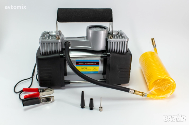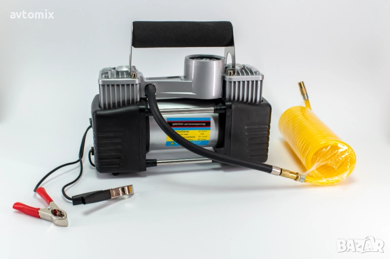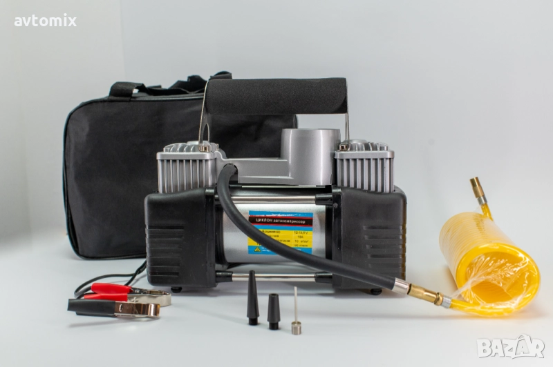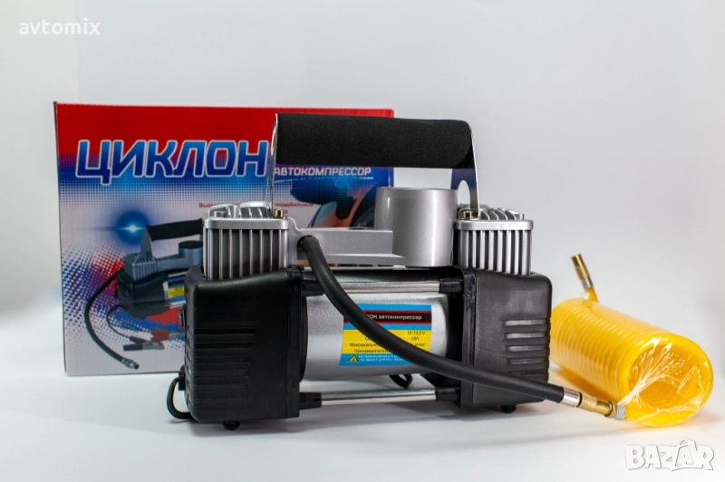 Автомобилният компресор ЦИКЛОН/CYCLONE е незаменим помощник в пътни ситуации, когато е необходимо бързо и удобно напомпване на гуми. Той е компактен, лесен за употреба и осигурява бърз и качествен резултат.