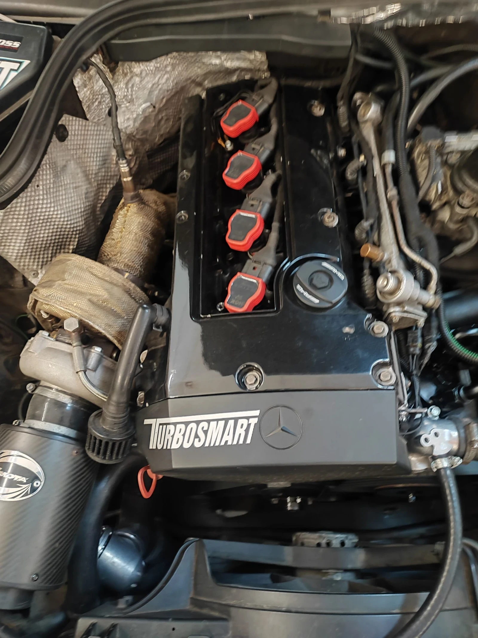 Модифициран с турбокомпресор Pulsar G25-660. Има извадени 500кс и 700нм като е оставена сейфти на 470кс. Спортен вал Dibilas с двойни пружини, ARP болтове на главата и усилени биели на двигателя. Електроника Ecumaster Clasic . Бензинова помпа Bosch 044 с регулатор Turbosmart. Пружини H&R с индивидуални амортесьори. Твърд маховик с 6 степенна скоростна кутия от W204 220cdi. Джанти 17ки задни 9. 5J предни 8J. Запазен кожен салон с ел седалки с подгрев. Всичко редовно без проблем при регистрация. Има забележки съобразени с годините и това че последните 2г не се кара.