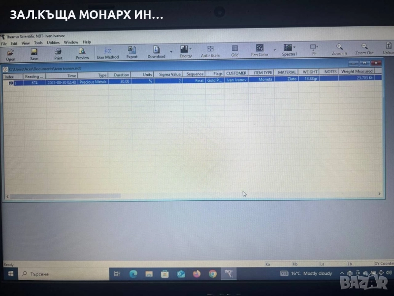 Безконтактна проба на злато и сребро → Обява 51542742