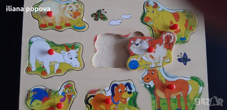 Играта е подходяща за малки дечица.Всяка фигурка има удобна дръжка за наместването на фигурката в точно определеното място.Цена 5 лв.