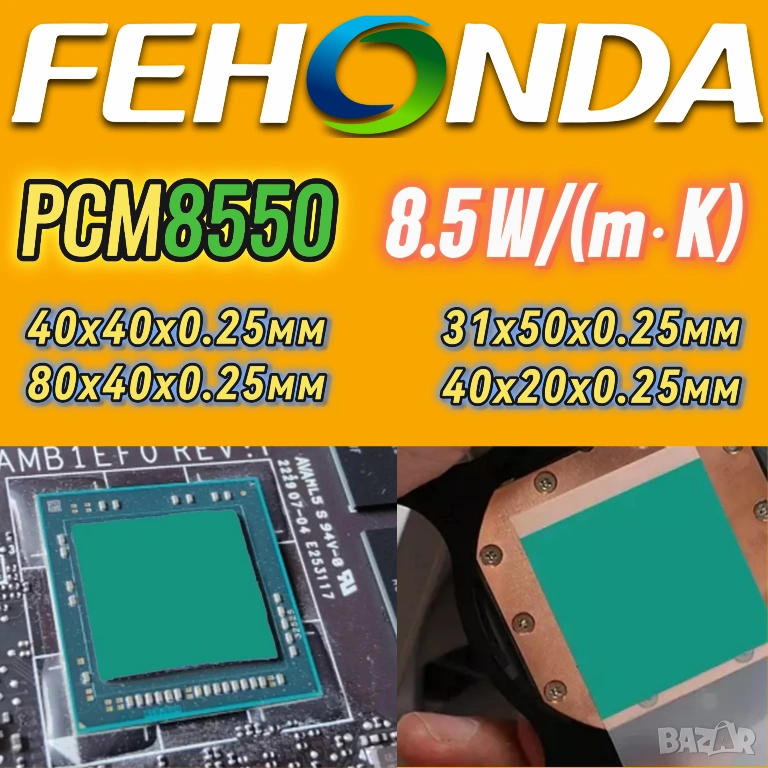 5бр PCM8550 40x40x0.25mm 8.5 W/(m·K)→7,00 € /бр