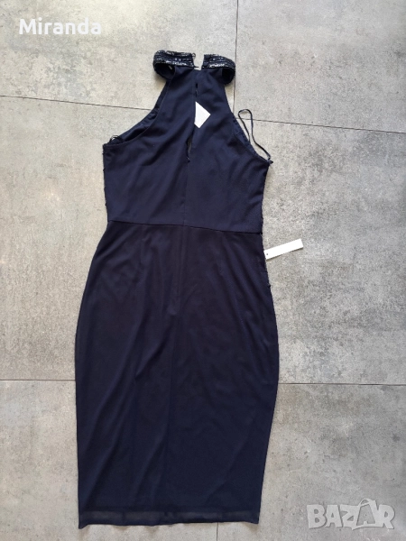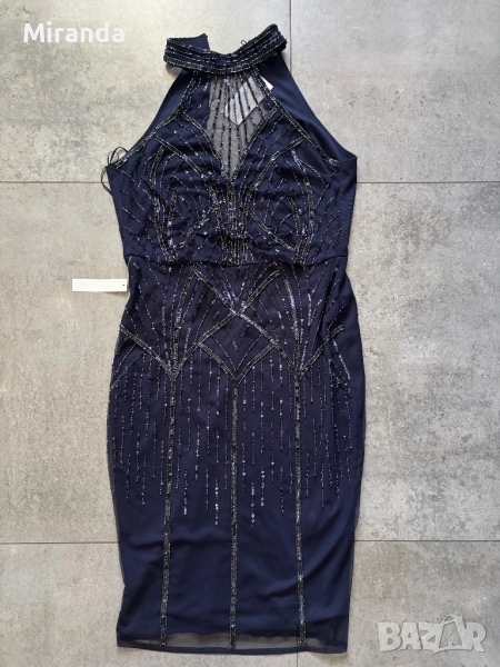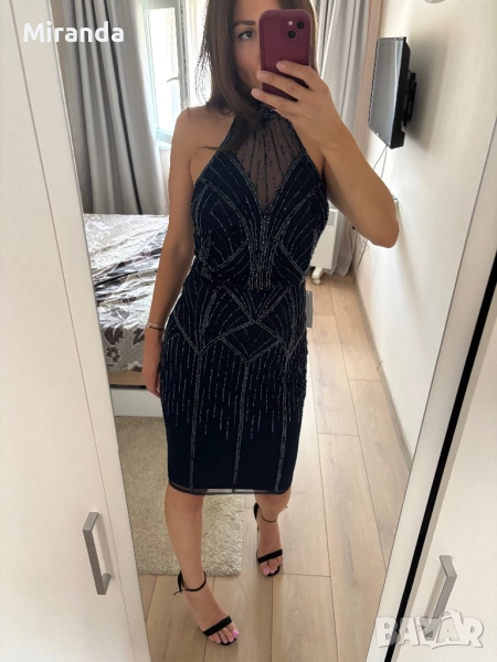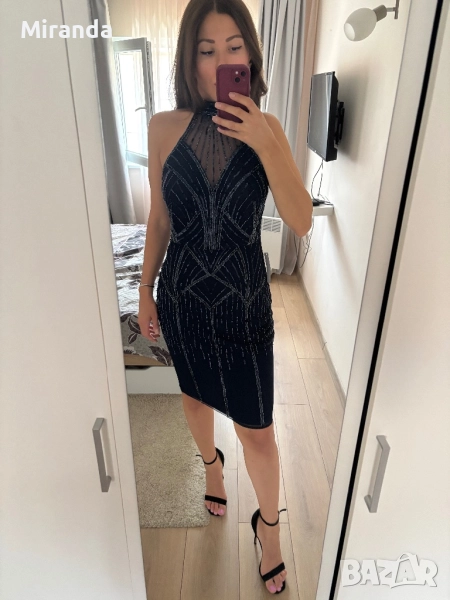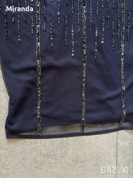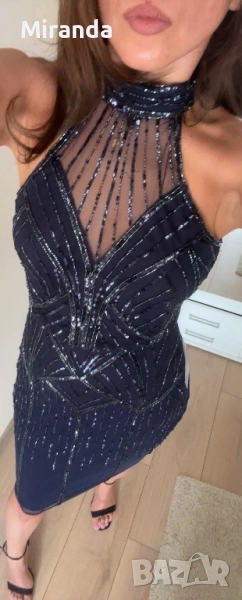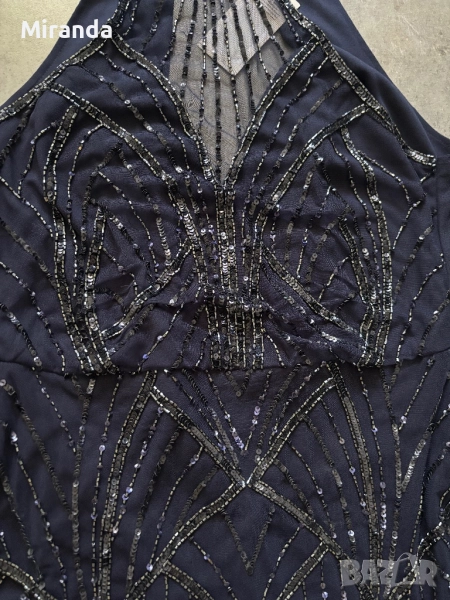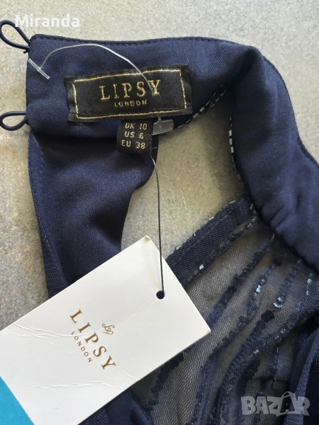 Нова елегантна рокля Lipsy London с прозрачен тюл, нежно обсипан с пайети, закопава се с цип и копче на врата. Нова с етикет. Става и за по-малък М иначе си отговаря на размера. Има лека разтегливост