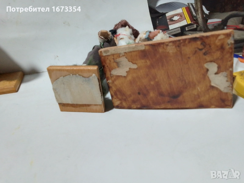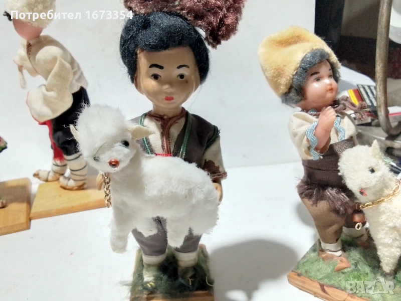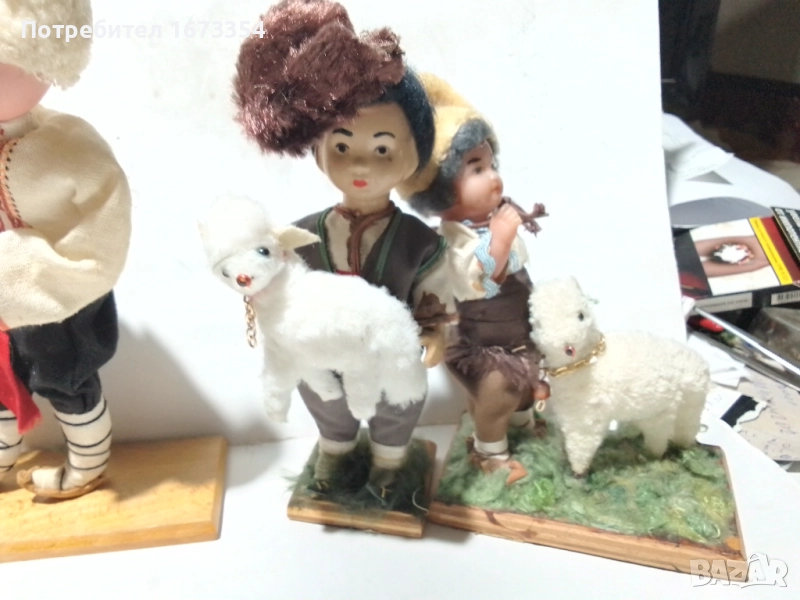Две много стари дървени кукли ( момчета с агнета ) момчето с агнето на земята е пластмасово .цена за двете 80.00 лв, за един бр 50.00 лв