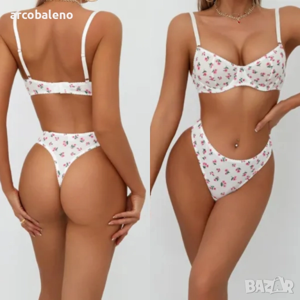 Дамски комплект бельо с пасторални флорални мотиви, 2цвята