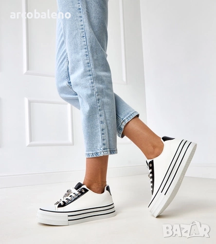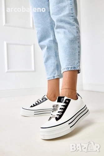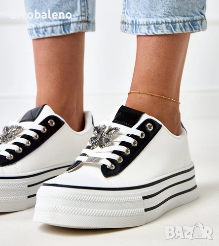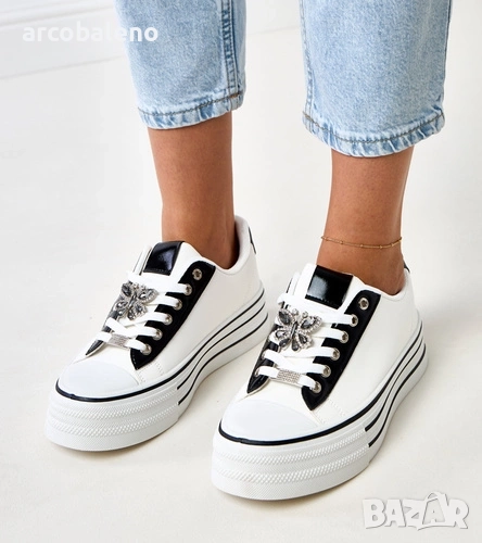 Нашите маратонки на платформа Aviara се открояват с уникалния си дизайн. Фината украса с пеперуда добавя нотка чар, което ги прави не само практични обувки, но и модерен аксесоар. Платформата осигурява допълнителна опора и ласкателен силует, което ги прави не само удобни, но и невероятно стилни.