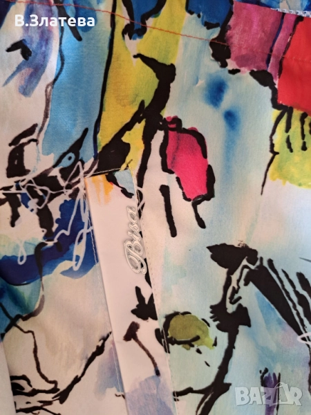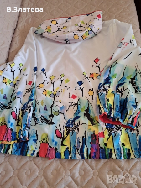 пъстро-цветно, много свежо. Якето е шушлеково, с лек хастар-от мрежеста материя,