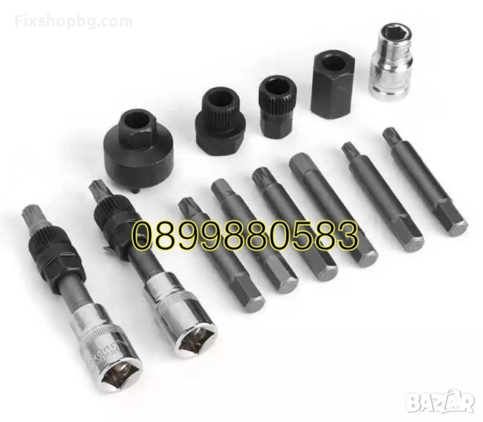 За монтаж на ремъчни шайби на алтернатори, фиксиране на ремъчните шайби със специална вложка с 33 стени, 6-стен вложки - 8мм и 10мм
