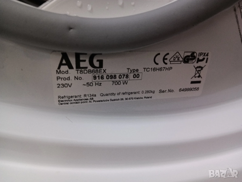 Сушилня с термопомпа АЕГ Aeg Series 8000 A+++ 8кг 2 години гаранция! → Обява 51549117