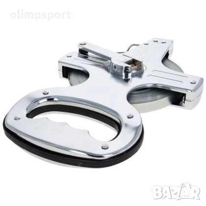 Ролетка с дължина 50 м, метален корпус и лента от фибростъкло ръкохватка и манивела.
