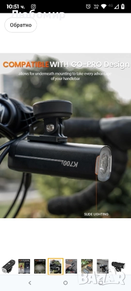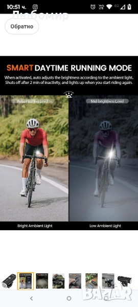 RAVEMEN K700 LED велосипедна светлина за монтаж под велосипедна светлина с автоматично изключване