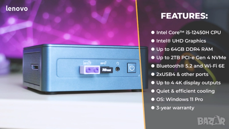 * Безшумно охлаждане, ниска консумация (\~6–10W в покой)