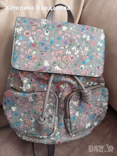 Продавам много интересна пъстра дамска раница на цветя. Подходяща както за ежедневието, така и за спорт. Цветният десен й придава весел и закачлив вид. Без никакви забележки. Като нова е.