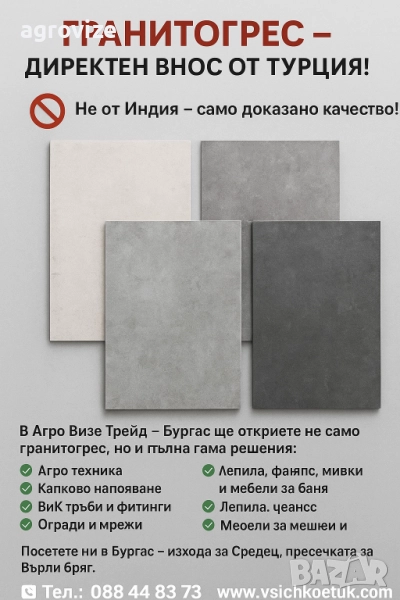 В Агро Визе Трейд – Бургас ще откриете не само гранитогрес, но и пълна гама решения: