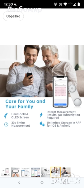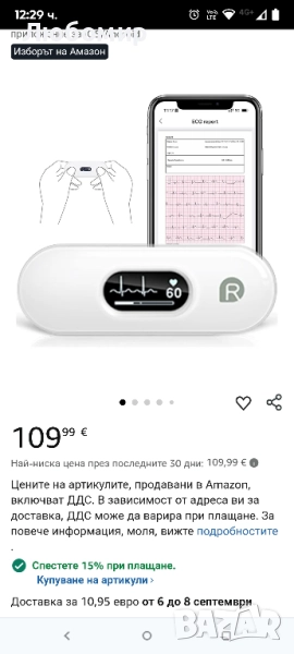 ЕКГ монитор CheckMe DuoEK-S, безжичен Bluetooth ЕКГ измервател с аналитичен отчет, 0.96-инчов OLED екран, 30s - 5 min, монитор за пулс, приложение за iOS/Android.Лесни измервания: Дизайн без превключватели за измервания с едно докосване. Идентифицира потенциални проблеми за по-малко от 30 секунди. ЕКГ дисплей в реално време на OLED екран, преглед на резултатите от анализа в приложението.