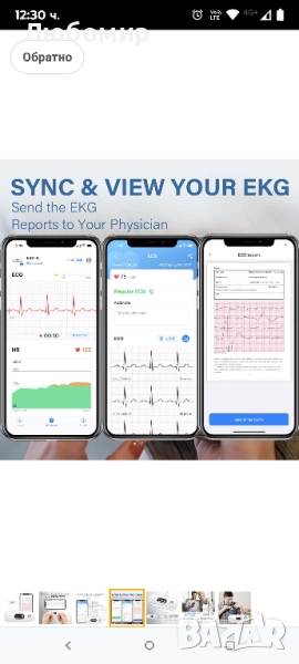 Преносим ЕКГ монитор CheckMe DuoEK-S, безжичен Bluetooth ЕКГ измервател с аналитичен отчет,