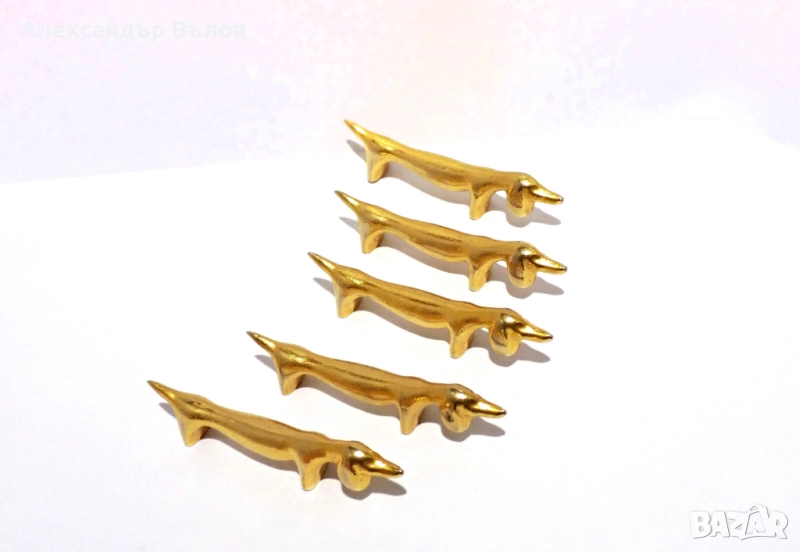Стар Комплект от 5 Поставки за Прибори Кучета Метал Сервиране Изискано Хранене → Обява 51551073