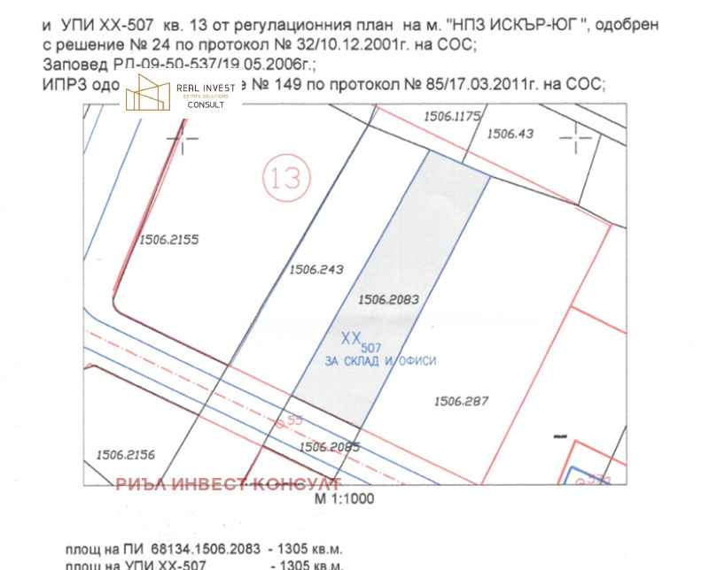 УПИ XX- 507 за склад и офиси, регулационен кв.13, от рег. план 'НПЗ ИСКЪР - ЮГ'