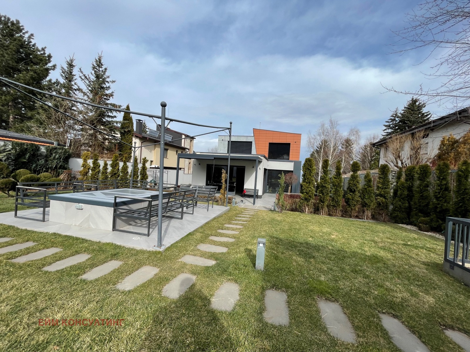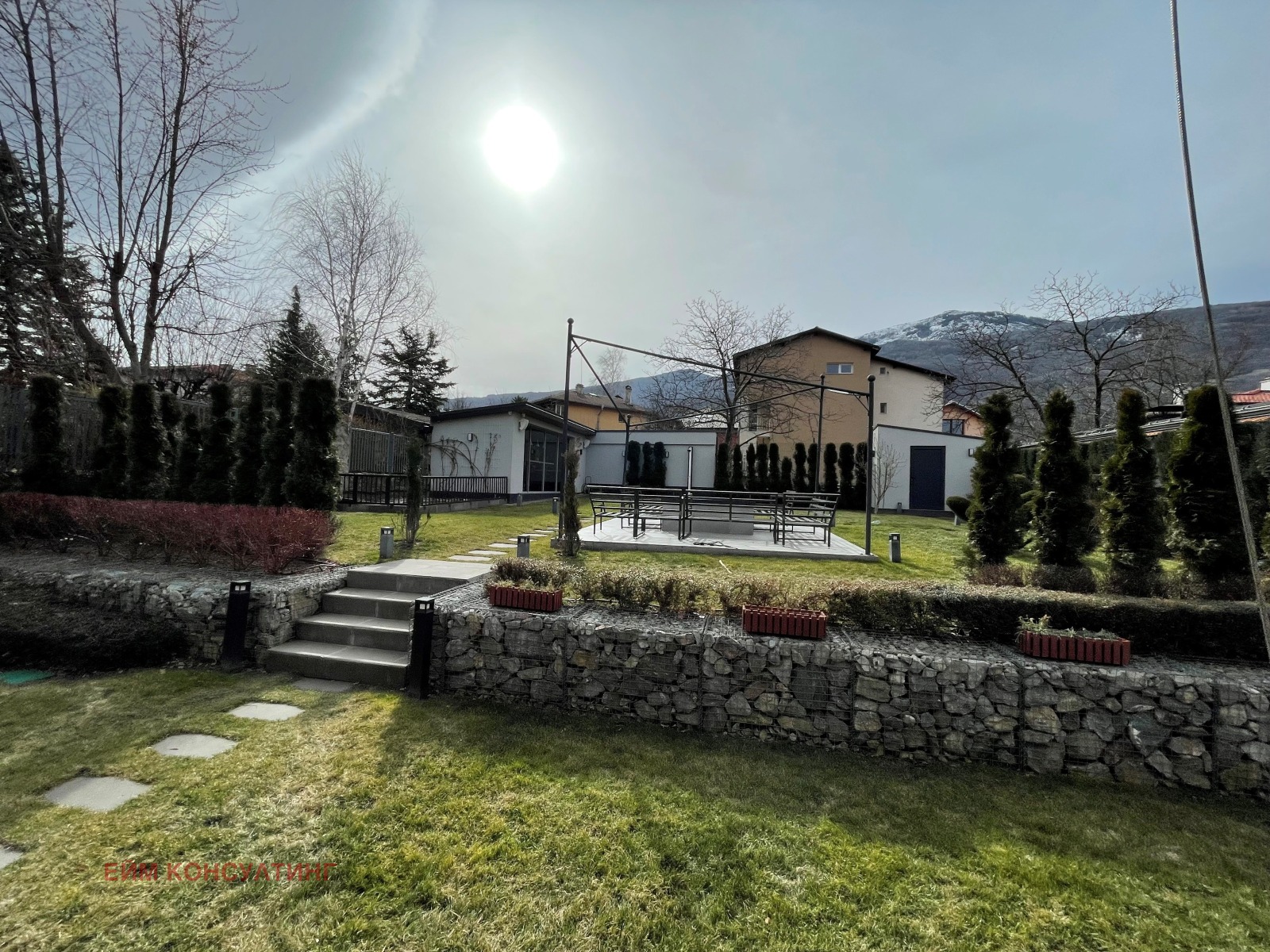 AimConsulting предлага стилна и много слънчева къща с модерна архитектура и интериорен дизайн. Намира се в кв. Драгалевци, в подножието на планина Витоша. Основното изложение на двора и къщата е ЮГ, с красиви гледки към планината.