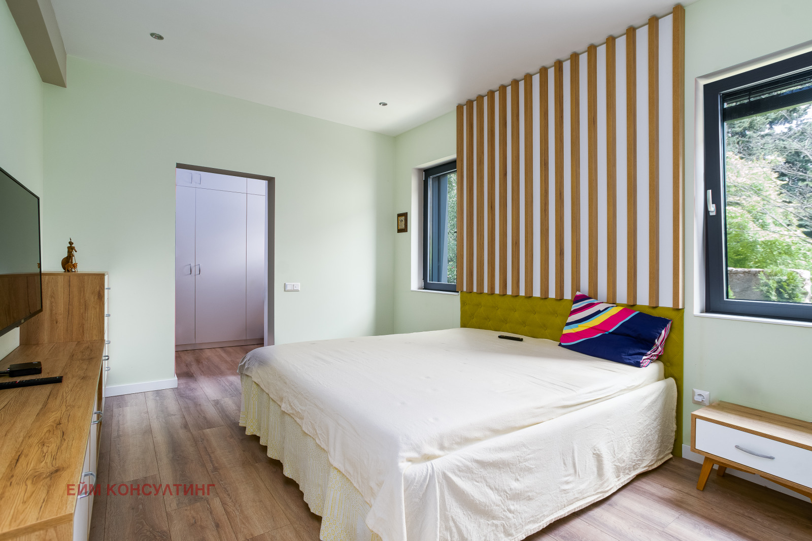 Къщата е SMART - електронно управление щори, осветление (къща и градина), комарници/сенници, отопление, поливна система.