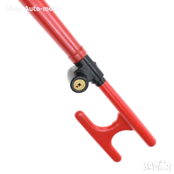 Бастунът за заключване на волан е ефективно механично средство за сигурност, предназначено да предотврати неоторизирано управление и кражба на превозното средство. Благодарение на здравата си метална конструкция и универсален дизайн, устройството се монтира лесно върху волана и блокира неговото завъртане, което прави управлението на автомобила невъзможно.