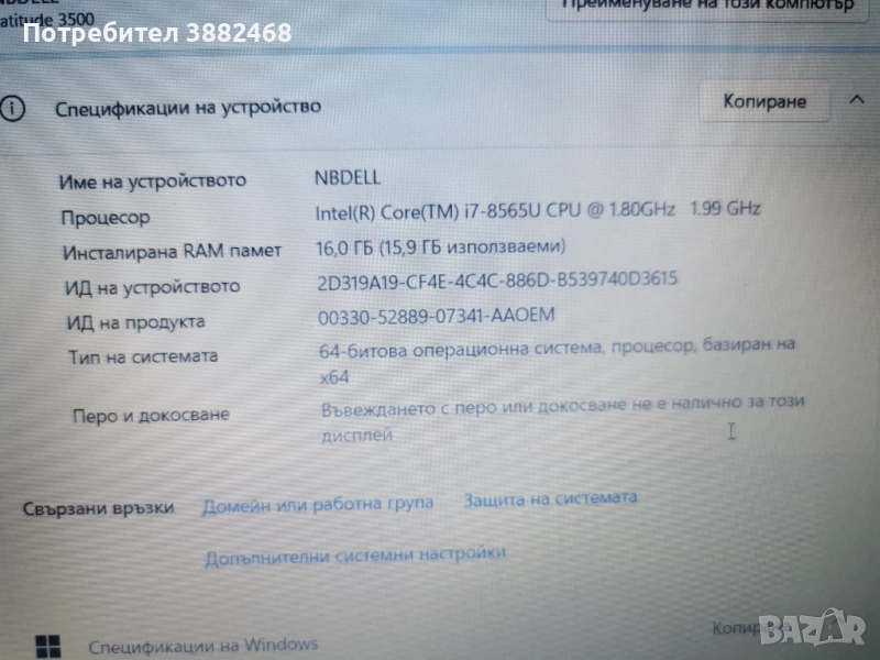Dell latitude 3500 i7 windows 11 pro преинсталиран