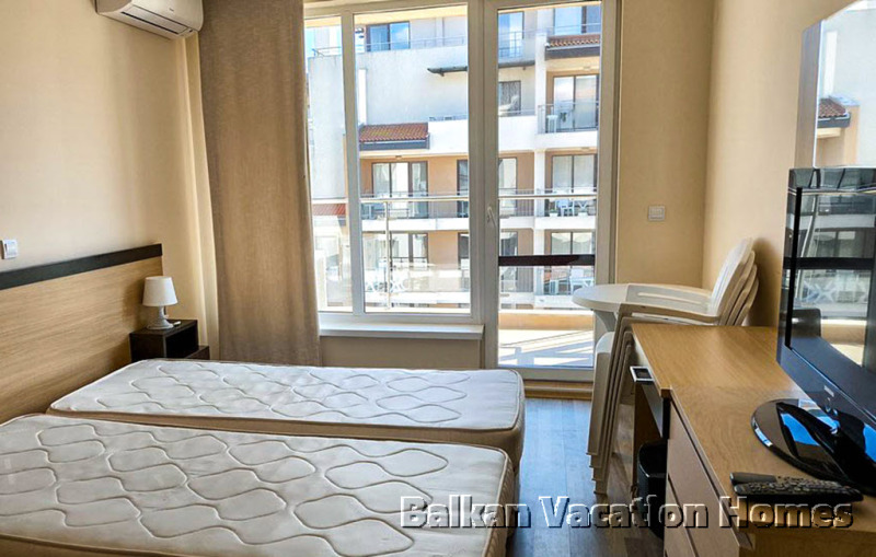 Хубав двустаен апартамент от 74,6 м2, точно на плажа на Обзор Бийч Ризорт. Апартаментът е на третия етаж, разполага със спалня и хол с отворена кухня. В хола има разтегателен диван за двама души.