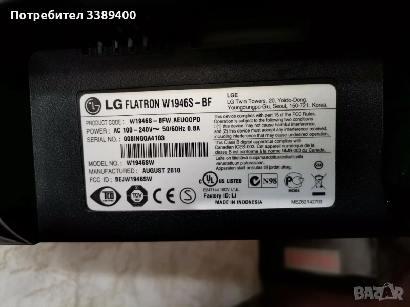 Монитор LG Flatron w1946 S-BF → Обява 51553470