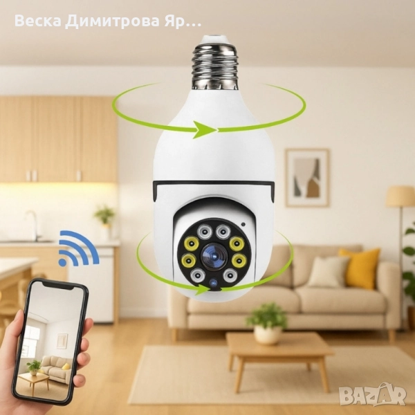 WiFi Панорамна IP Камера LYLÚ 360° във форма на крушка с нощно виждане и автоматично проследяване, снимка 1 - IP камери - 51553561 WiFi Панорамна IP Камера LYLÚ 360° във форма на крушка с нощно виждане и автоматично проследяване, снимка 2 - IP камери - 51553561 WiFi Панорамна IP Камера LYLÚ 360° във форма на крушка с нощно виждане и автоматично проследяване, снимка 3 - IP камери - 51553561 WiFi Панорамна IP Камера LYLÚ 360° във форма на крушка с нощно виждане и автоматично проследяване, снимка 4 - IP камери - 51553561 WiFi Панорамна IP Камера LYLÚ 360° във форма на крушка с нощно виждане и автоматично проследяване, снимка 5 - IP камери - 51553561 WiFi Панорамна IP Камера LYLÚ 360° във форма на крушка с нощно виждане и автоматично проследяване, снимка 6 - IP камери - 51553561 WiFi Панорамна IP Камера LYLÚ 360° във форма на крушка с нощно виждане и автоматично проследяване, снимка 7 - IP камери - 51553561 1/7