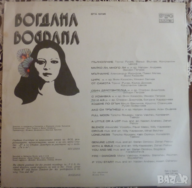 Богдана ВТА 10726 в много добро състояние VG+. Цена 5.00 Eu