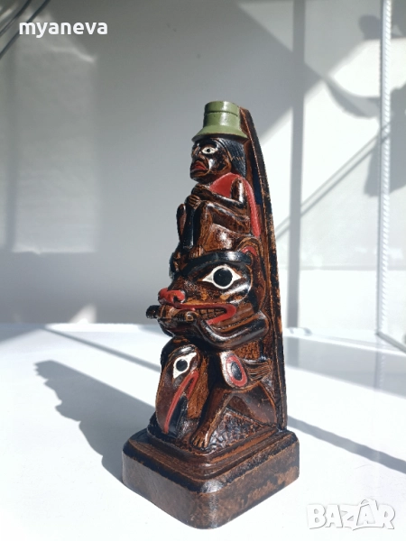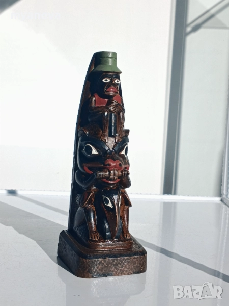 Тези мачти често изобразяват символични фигури на хора, животни или свръхестествени същества, представящи семейна история, родословие или важни събития. Размер 18 см. Цена 30 лв.
