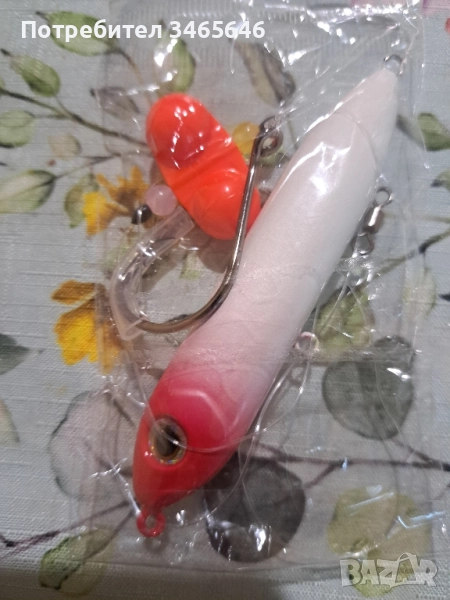 Готов монтаж за сом здраво влакно безцветно, подводна тапа имитираща рибка, голяма кука, вирбел, стопери, дрънкалка превличаща вниманието на сома цената е за един монтаж за трите комплекта 20 лева ако имате интерес пишете ми на лично съобщение изпрам с еконт и спиди в цялата страна