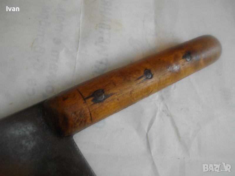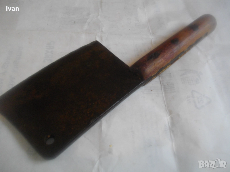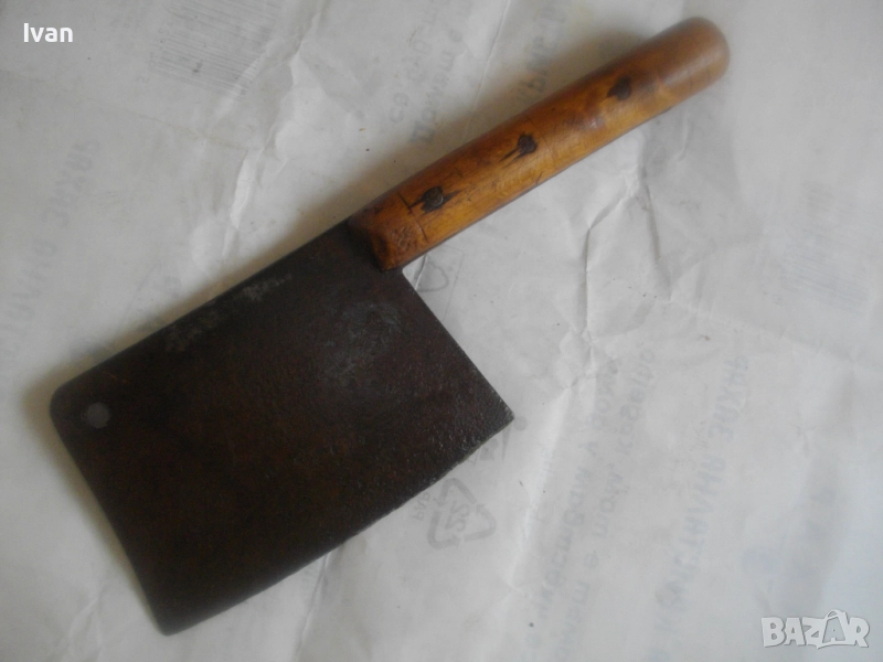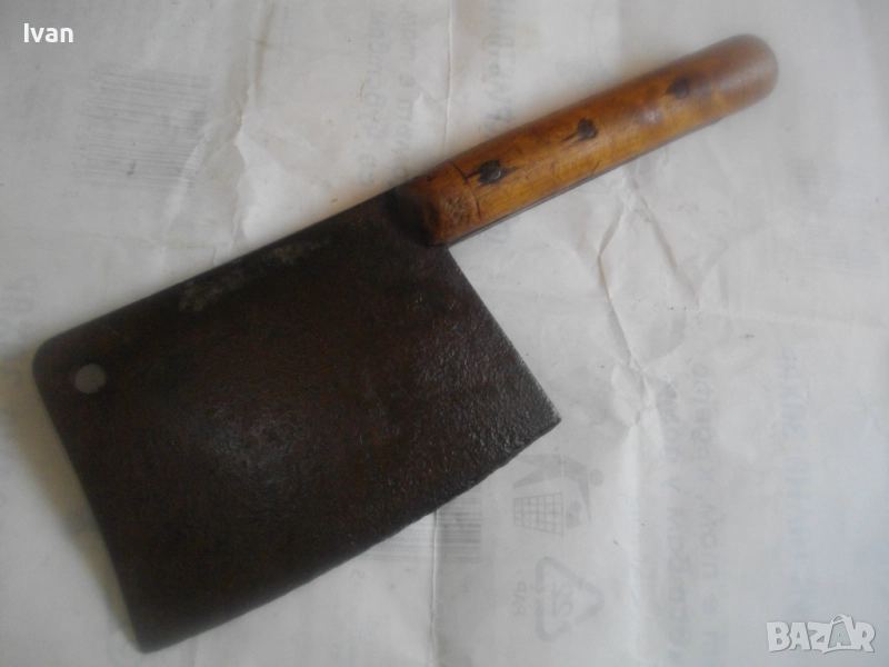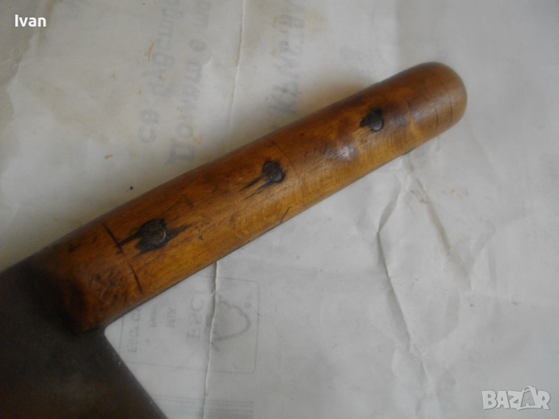 Ретро винтидж стар български Соц НРБ сатър брадвичка 290 мм ръчно кован за кълцане на месо и кости