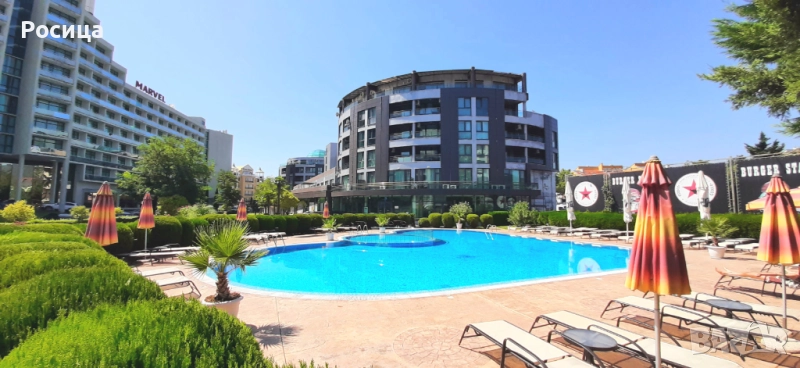 В северната част. Комплекс Sunny Beach Plaza, над Carrefour - на 250 м от плажа и 400 м от Lidl. До хотел Марвел.