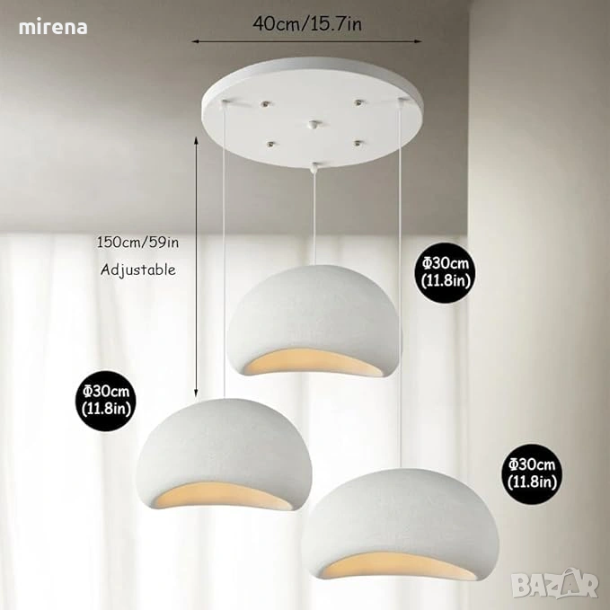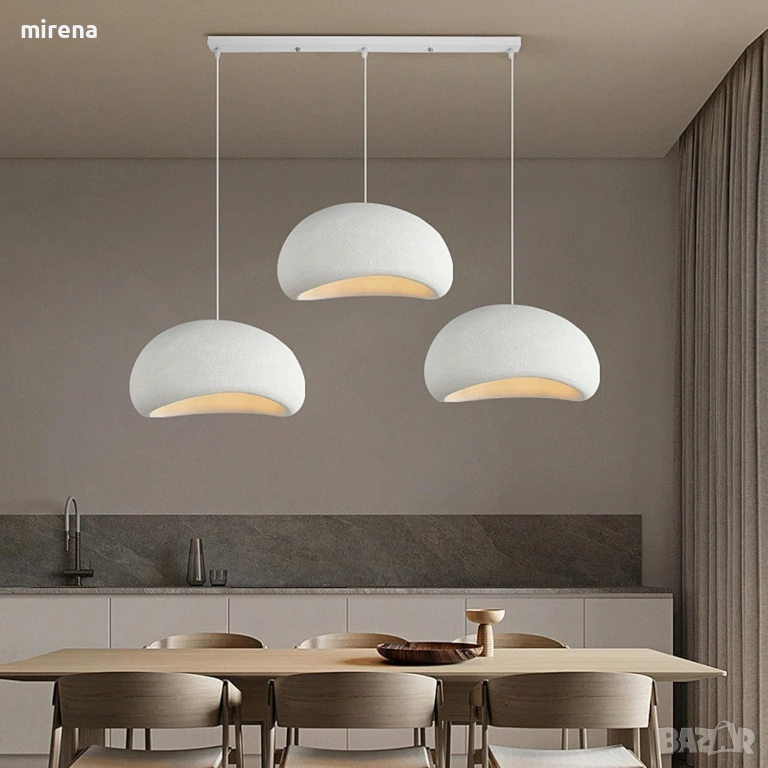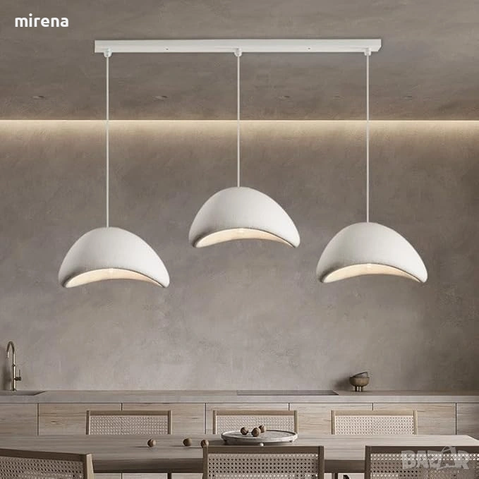 Креативен висящ аплик Wabi-sabi E27 Бял полиетиленов полилей Модерна висяща лампа за трапезна маса с 3 крушки, регулируемо вътрешно осветление, декорация за дома за трапезария, кухненски остров