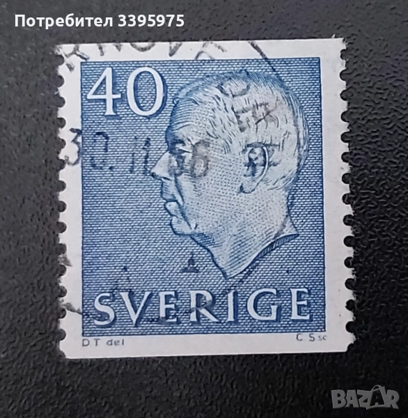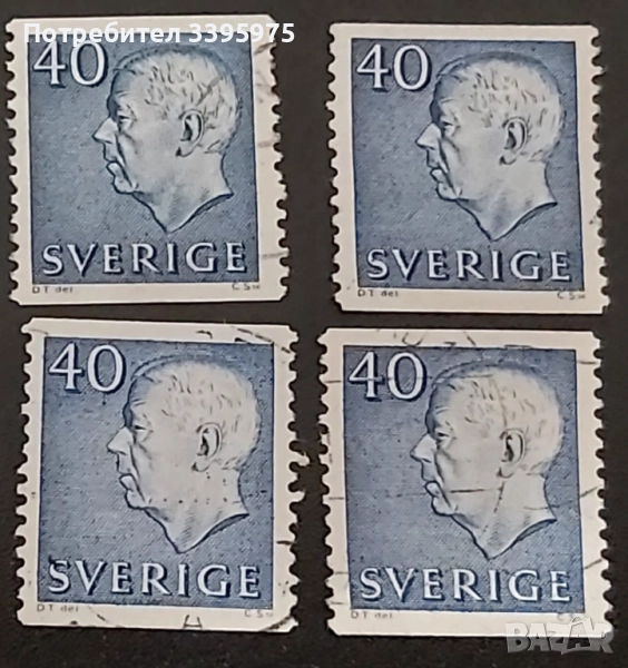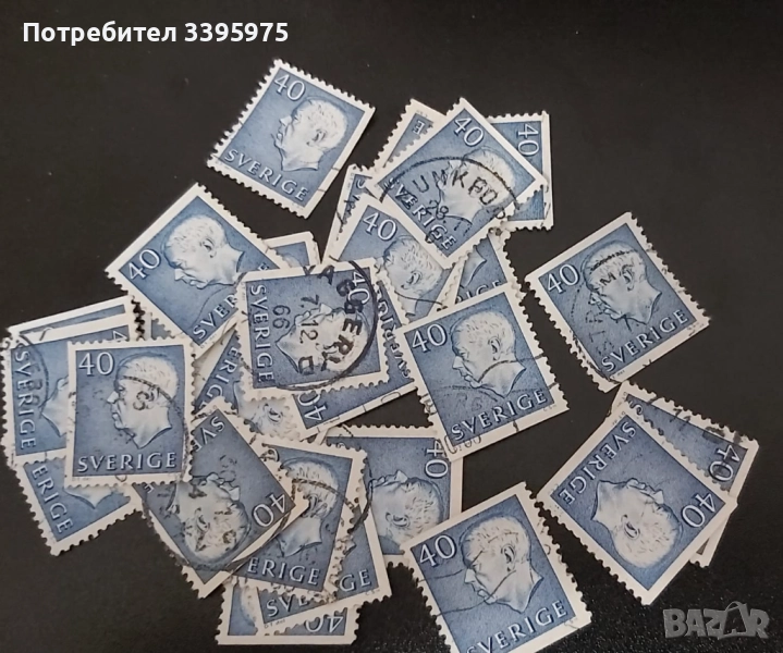 Лот от 104 оригинални шведски марки с изображението на крал Густав VI Адолф, номинал 40 йоре, издадени през 1964 г.