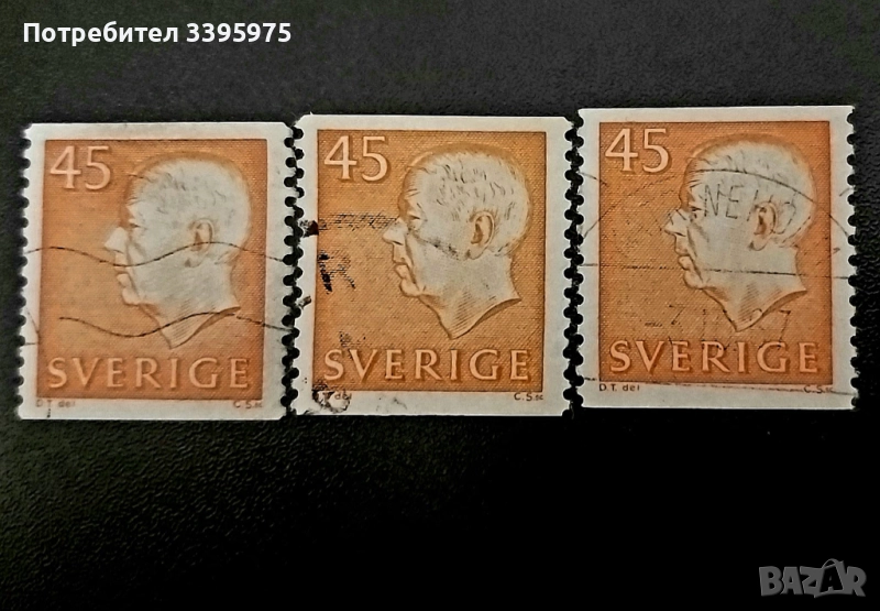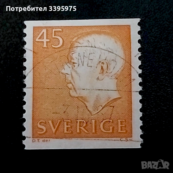 Комплект от 46 оригинални пощенски марки на Швеция с портрет на крал Густав VI Адолф, номинална стойност 45 йоре, цвят - оранжев. Година на издаване: 1960-1969