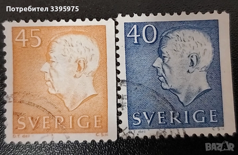 Продавам пощенски марки Швеция ”Густав VI Адолф” 1964 (40 йоре и 45 йоре) 104 бр + 46 бр = 150 броя