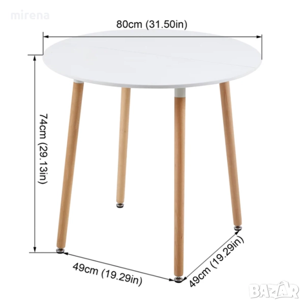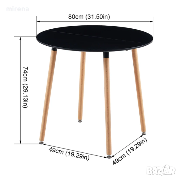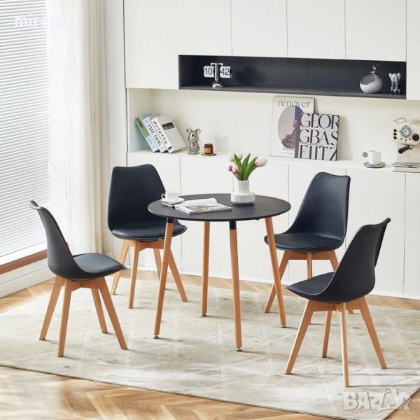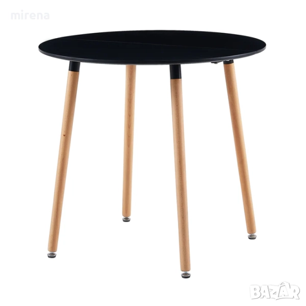 Кръгла трапезна маса 80 см с 4 крака - бяла/черна