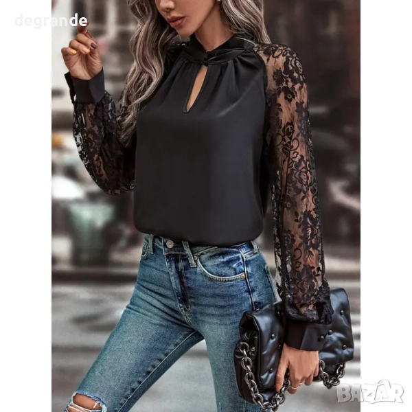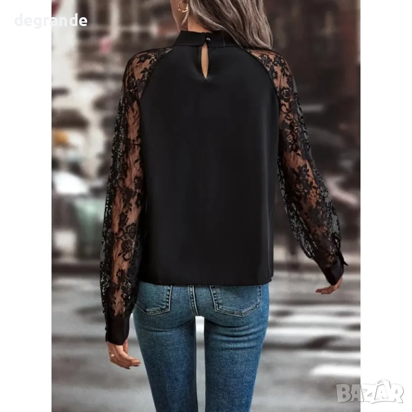 дамска официална блуза с високо деколте и тип реглан дантелени ръкави