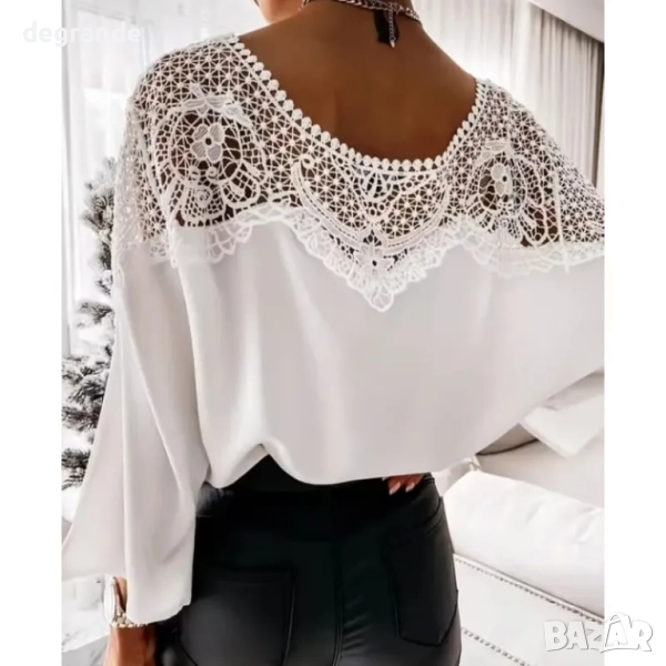 Бяла дамска блуза с дантела, снимка 1 - Блузи с дълъг ръкав и пуловери - 51557427 Бяла дамска блуза с дантела, снимка 2 - Блузи с дълъг ръкав и пуловери - 51557427 Бяла дамска блуза с дантела, снимка 3 - Блузи с дълъг ръкав и пуловери - 51557427 Бяла дамска блуза с дантела, снимка 4 - Блузи с дълъг ръкав и пуловери - 51557427 1/4