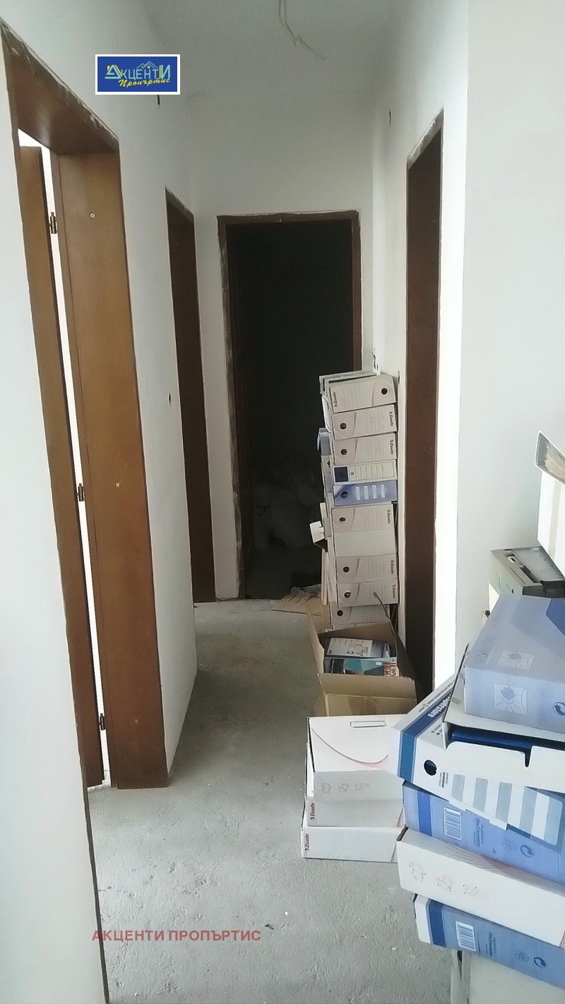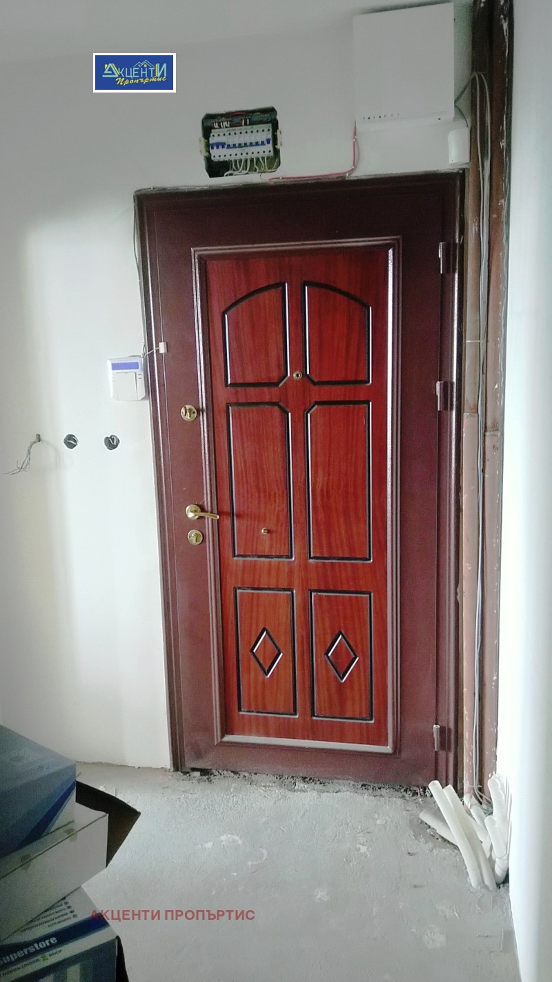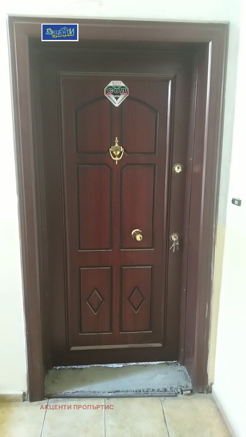 Агенция за недвижими имоти Акценти Пропъртис Ви предлагаме тристаен тухлен апартамент, на шпакловка и замазка, разположен на междинен жилищен етаж/трети/ в широкия център на гр.В.Търново, в един от най-предпочитаните за живеене райони, а именно в близост до Нова болница. Апартаментът е много просторен, с изложение север-юг, с обща площ от 104.78 кв.м, разпределени между просторна всекидневна с кухненска част/южна/, две спални, баня с тоалетна, отделна тоалетна, входно антре и две тераси. Към жилището са включени допълнителни помещения: избено помещение и подземен гараж/с отделни партиди за ток и вода/, с площ от 28.98 кв.м.