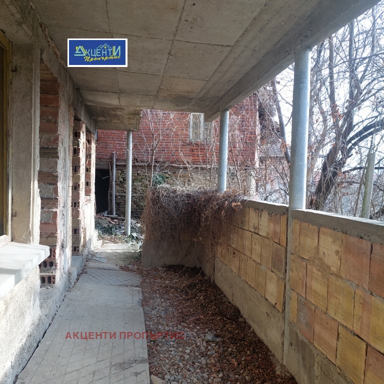 Агенция за недвижими имоти Акценти Пропъртис Ви предлагаме къща, разположена в парцел с площ от 756кв.м., заедно със стара къща, находяща се в същия парцел. Новата къща е двуетажна, монолитна/с плоча/. Първият етаж се състои от 3 стаи, санитарен възел и гараж.Външно стълбище води до втория етаж, където е разположена голяма и висока дневна с възможност за обособяване на спално помещение, санитарен възел и голяма панорамна тераса. Гаражът има връзка и с втория етаж. Къщата е с изложение изток-юг. Старата къща е за основен ремонт или събаряне. В имота има партиди за ток и вода. Имотът граничи с река и е краен в улицата на която се намира, но не е краен в града. За повече информация и оглед на имота, моля звъннете на посочения в обявата тел.номер. Ключове за имота, в офиса на агенцията! Номер на офертата 6224.