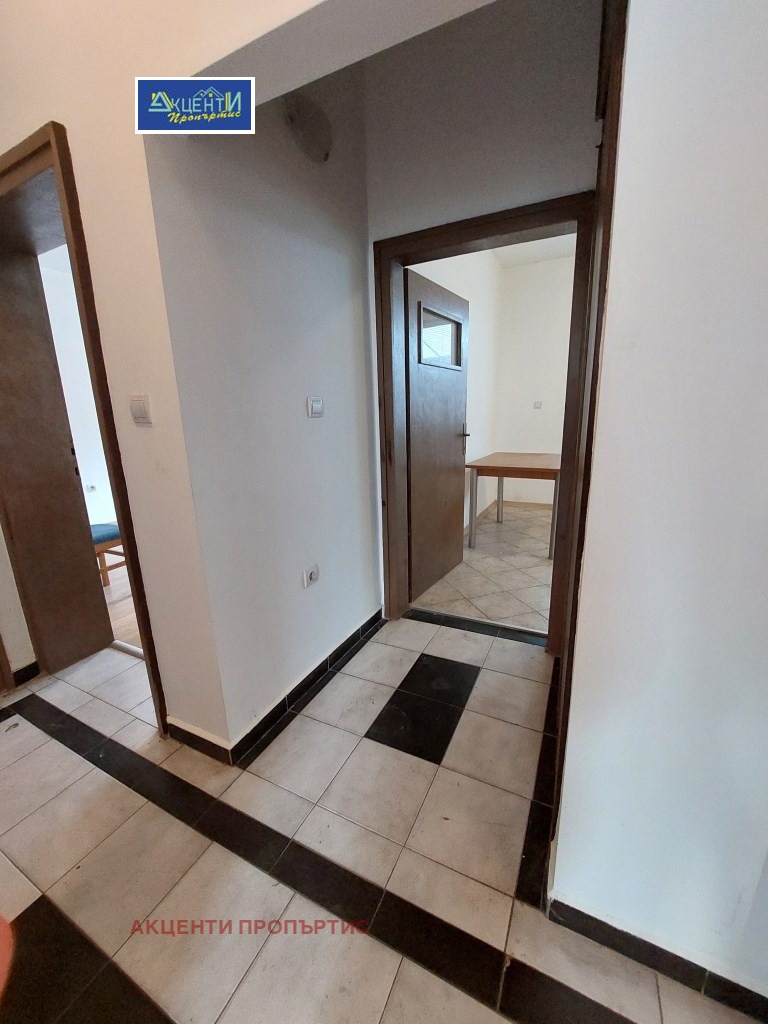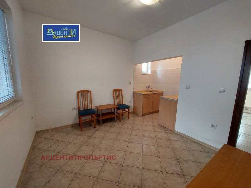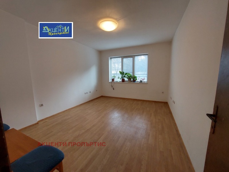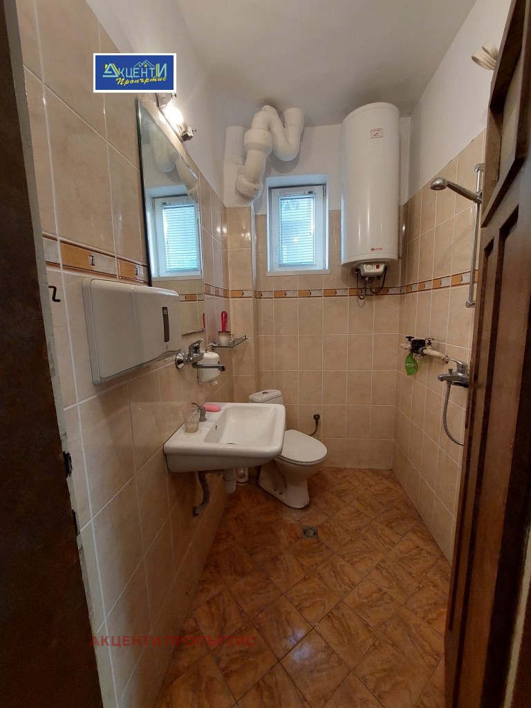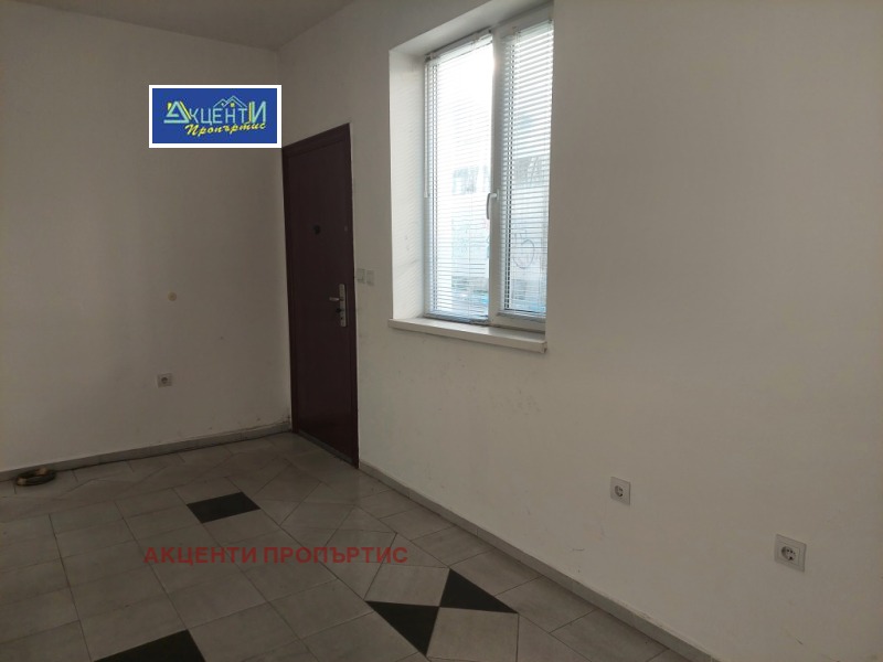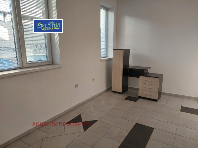 Агенция за недвижими имоти Акценти Пропъртис Ви предлагаме етаж от къща със самостоятелен вход, подходящ за офис.Местоположението е лесно за обясняване на клиентите, като има на разположение към него и две паркоместа.Офисът се намира в близост до кооперативния пазар, съда, автобусна спирка и др. Състои се от две стаи, дневна с кухненски бокс, коридор, баня с тоалетна и тераса.В офиса се влиза директно от улицата/без стълбище/, като има и втори вход от вътрешния двор чрез външно стълбище през терасата. Това дава възможност да се наеме от 2 фирми, които да ползват общ санитарен възел и кухненска част. Помещенията са в добро състояние, подовата настилка е гранитогрес, PVC дограма и др. Възможно е монтиране на климатик за сметка на наема. Помещенията са подходящи за офис, куриерска дейност, козметично студио, счетоводна къща и др. Номер на офертата 11225.