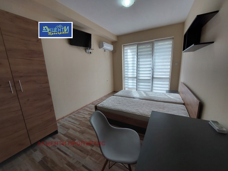 Агенция за недвижими имоти Акценти Пропъртис Ви предлагаме едностаен апартамент, с площ от 30кв.м. Апартаментът е напълно оборудван с нови мебели и електроуреди (телевизор, хладилник, пералня, абсорбатор, готварска печка, керамични котлони, бойлер и климатик) Отоплението е на климатик. Ниски месечни разходи! 24 часова поддръжка и видео наблюдение.Апартаментите са с функционално разпределение: кухня,спалня с двойно легло или 2 единични легла, баня с тоалетна и тераса.Възможност за интернет/телевизия и настаняване с домашен любимец.