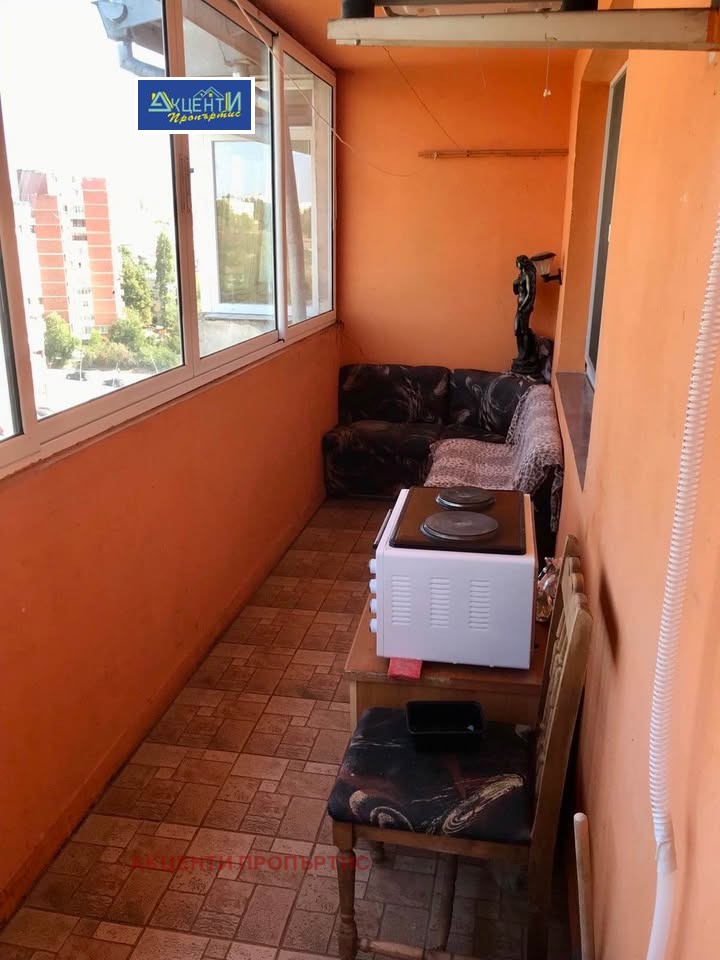 Агенция за недвижими имоти Акценти Пропъртис Ви предлага двустаен тухлен апартамент, разположен на висок жилищен етаж, в сграда с асансьор. Жилището се намира в широк център на гр.В.Търново, на комуникативно място, в близост до ресторанти, магазини, аптеки, бензиностанции, автобусни спирки, Спортна зала...Апартаментът се състои от: коридор, трапезария с кухня, спалня, баня с тоалетна и голяма тераса. Отоплението е на ток. Обявената цена включва наличното обзавеждане. Към апартамента има избено помещение.Номер на офертата 31224.