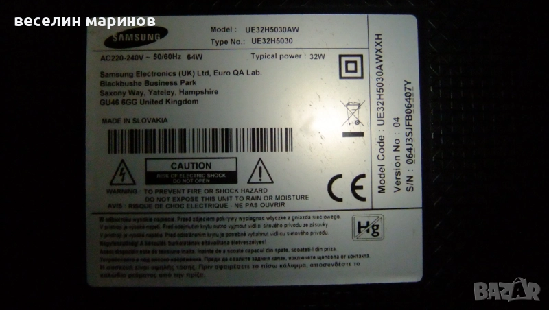 Продавам телевизор SAMSUNG UE32H5030AW → Обява 51558579