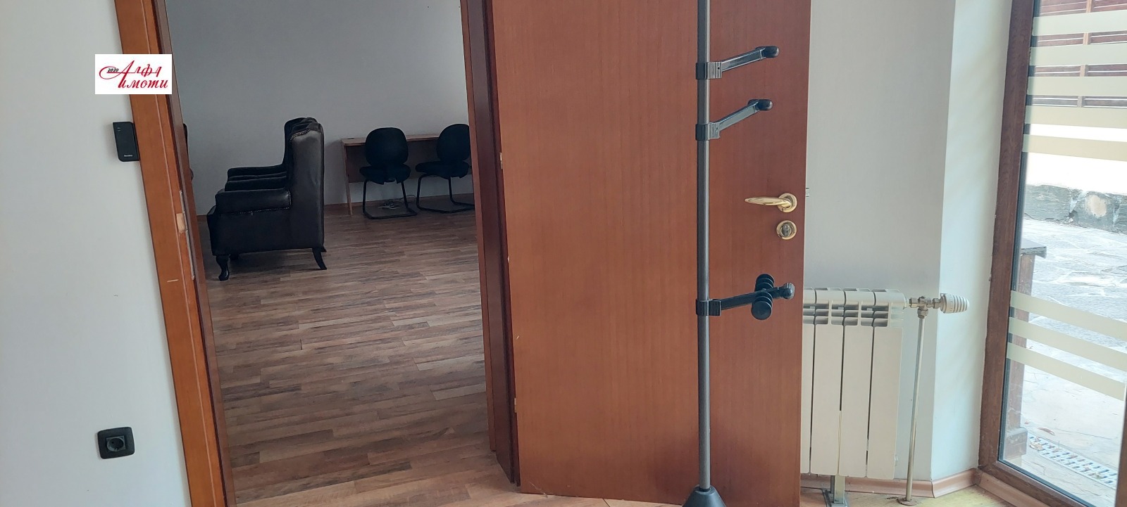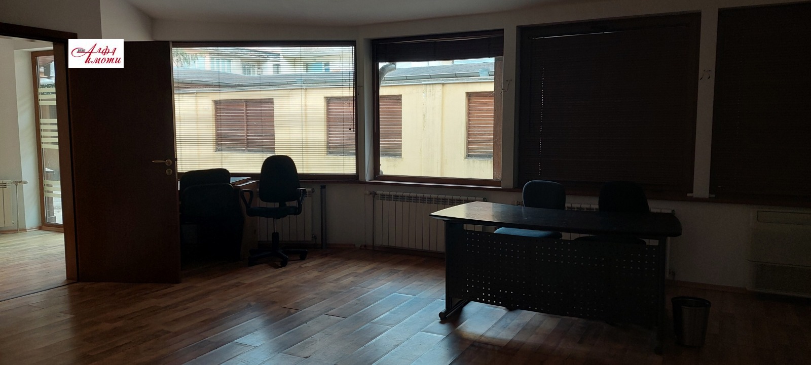 Елегантно обзаведен офис в административния център на града. Характеристики на имота: Три големи помещения, кухненски бокс, санитарен възел (115 м2). Лятна градина (50 м2), прилежаща единствено към офиса. Стратегическа локация, самостоятелен имот!