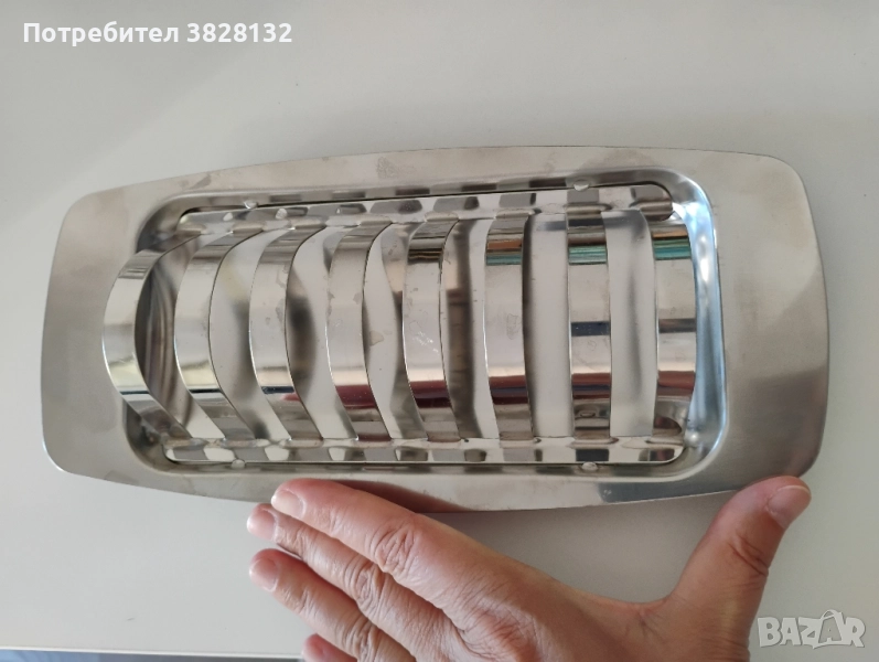 поставка за хляб, препечени филийки, сухари, бисквитки (може и за CD), от алпака. разглобява се. лесен за почистване.